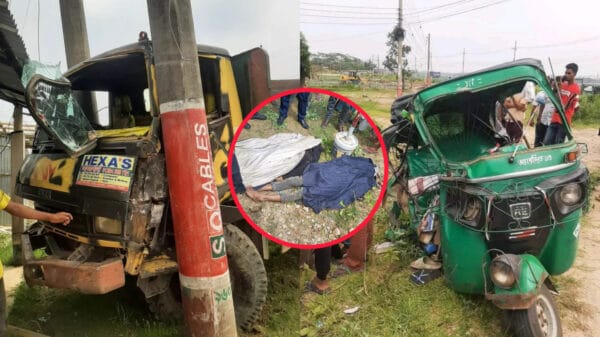আজ মঙ্গলবার (৩০ এপ্রিল) দুপুর দেড়টার দিকে এ দুর্ঘটনা ঘটে। নিহতরা হলেন, সিলেটের গোয়াইনঘাট উপজেলার নোয়াগাঁওয়ের রফিক মিয়ার ছেলে তুহিন মিয়া (১৮) ও একই গ্রামের সিরাজ উদ্দিনের স্ত্রী সালেতুন্নেসা (৬০)। এঘটনায় আরও দুজন আহত হয়েছেন। তাদের মধ্যে অটোরিকশা চালক ও এক যাত্রী রয়েছেন। তাৎক্ষণিক তাদের নাম-পরিচয় পাওয়া যায়নি।