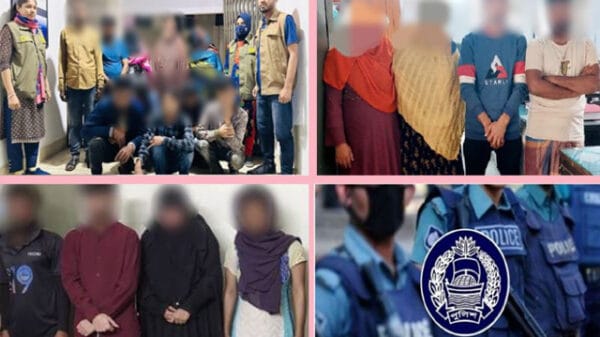 আটককৃতরা হলেন-মৌলভীবাজার জেলার কুলাউড়া উপজেলার সাধনপুর গ্রামের মো. গিয়াজ উদ্দিনের ছেলে মো. সাহাব উদ্দিন সাজু (৩১), সিলেটের ওসমানীনগর উপজেলার পূর্ব তাজপুর গ্রামের আজেদ আলীর ছেলে মো. নয়ন মিয়া (২৮), একই উপজেলার গোয়ালাবাজার তাজপুর এলাকার রফিক মিয়ার স্ত্রী ঝুমা বেগম (২৭) ও গোপালগঞ্জ জেলার কোটালীপাড়া থানার বৈকুন্ঠপুর গ্রামের সুরুষ গুপ্ত’র মেয়ে পপি গুপ্ত (৩০)।