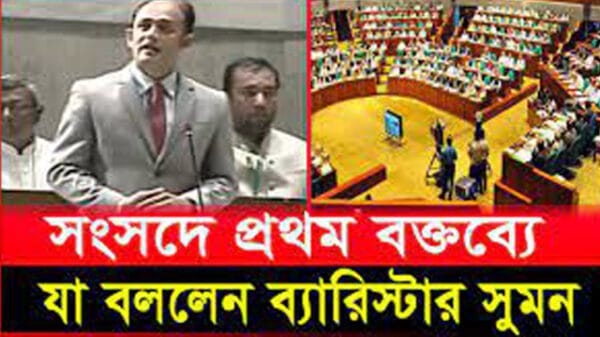 ব্যারিস্টার সুমন বলেন, আমি ভয় পাই মাননীয় প্রধানমন্ত্রীর পেছনে যাঁরা (সরকারি দলের সদস্য) বসছেন, তাঁরা তো সকল ক্ষমতার উৎস, তাঁদের হয়তো মাননীয় প্রধানমন্ত্রী সব সময় চোখে দেখতে পারেন না। তবে আমার বিশ্বাস, প্রধানমন্ত্রী আমাদের যেভাবে দেখবেন, পেছনে যাঁরা আছেন, এদেরকেও যদি একটু চেক করেন…।’ এ সময় প্রধানমন্ত্রী শেখ হাসিনাকেও হাসতে দেখা যায়।