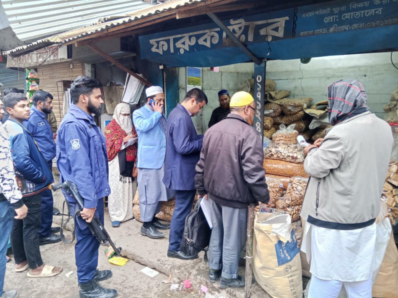 এ সময় বাংলাদেশ পরিবেশ সংরক্ষণ আইন-১৯৯৫ (সংশোধিত ২০১০)এর ৬(ক) ধারা ভঙ্গের অপরাধে ১টি দোকানে অভিযান চালিয়ে আনুমানিক ৭০ কেজি পলিথিন শপিং ব্যাগ জব্দ ও সতর্কতামূলক ৫ হাজার টাকা জরিমানা ধার্যপূর্বক আদায় করা হয়।