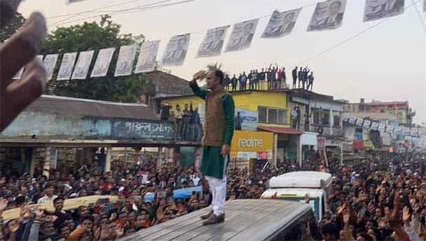 সমাবেশ শুরুর আগে বিশাল নির্বাচনী শোডাউন করেন ব্যারিস্টার সুমন। হাজার হাজার নেতাকর্মীদের নিয়ে সমাবেশে যোগ দেন তিনি।
