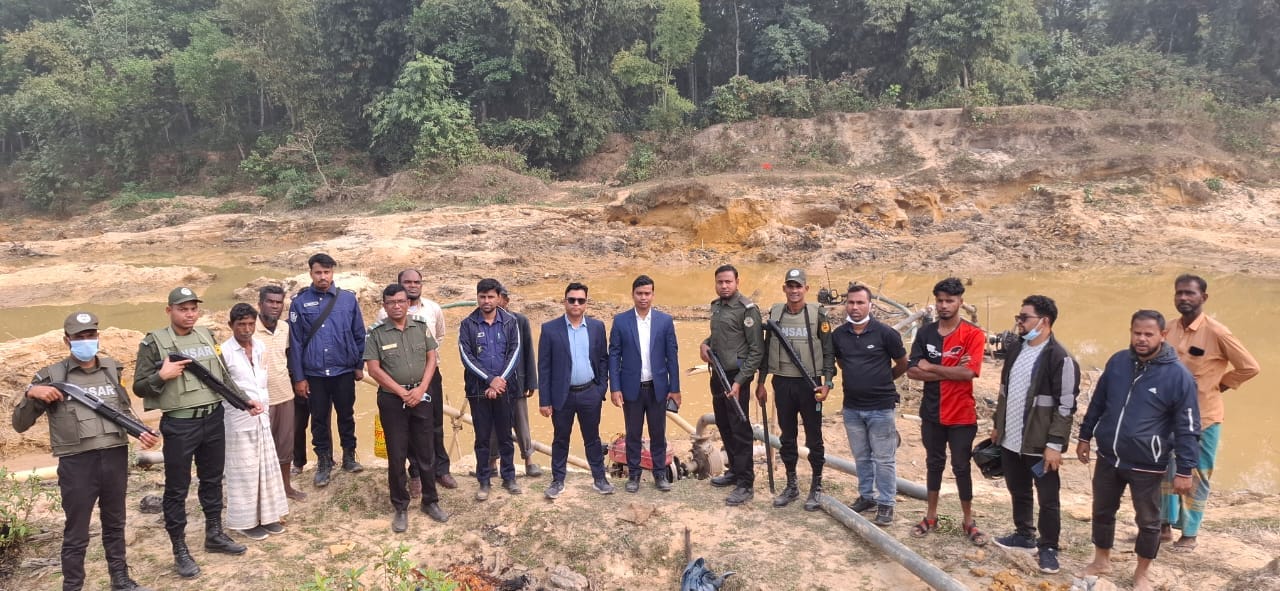 এসময় অভিযান পরিচালনাকালে অবৈধভাবে ড্রেজার মেশিন দ্বারা বালু উত্তোলনের কাজে ব্যবহৃত অন্তত ১০ টি মেশিন এবং আনুমানিক ২হাজার ফুট প্লাস্টিক পাইপ বিনষ্ট করা হয়।