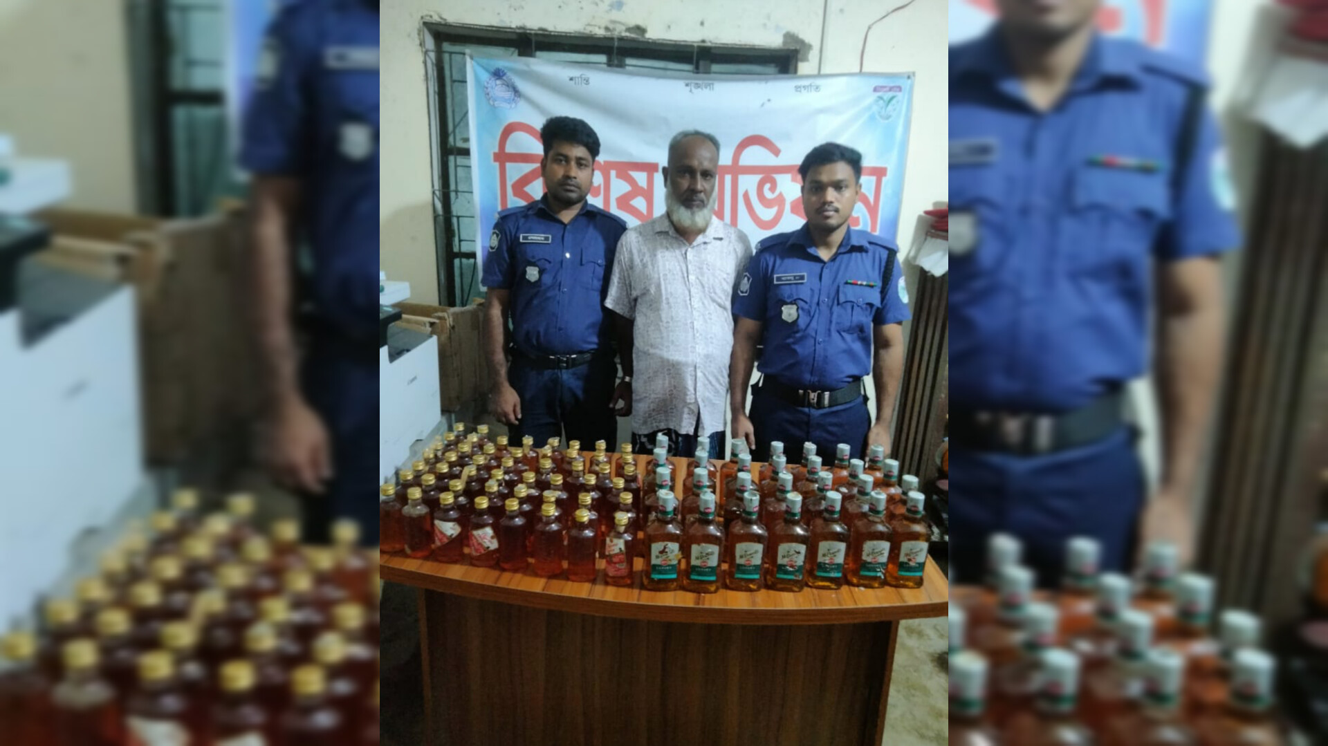 তল্লাশিতে তার কাছ থেকে Mc Dowells No-1 Luxury ব্র্যান্ডের ২৮ বোতল ও Officer’s Choice ব্র্যান্ডের ৫০ বোতলসহ সর্বমোট ৭৮ বোতল বিদেশী মদ উদ্ধার করা হয়। উদ্ধারকৃত মদের আনুমানিক বাজারমূল্য প্রায় ৫৩ হাজার টাকা।