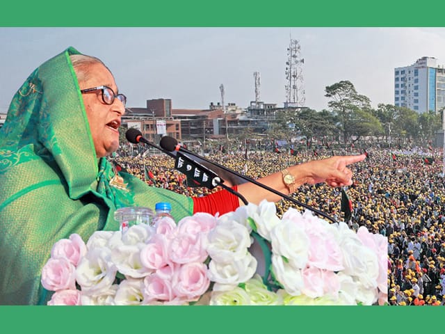 শেখ হাসিনা বলেন, গত ১৫ বছর গণতান্ত্রিক ধারা অব্যাহত আছে বলেই আজকে বাংলাদেশে উন্নয়ন হয়েছে। জিয়া, এরশাদ, খালেদা জিয়া তাদের সময় বাংলাদেশের উন্নতি হয়নি; বাংলাদেশ পেছনে চলে গেছে। আওয়ামী লীগ আসলে বাংলাদেশ সামনের দিকে এগিয়ে যায়। এ অপ্রতিরোধ্য অগ্রযাত্রা অব্যাহত রাখতে হবে।