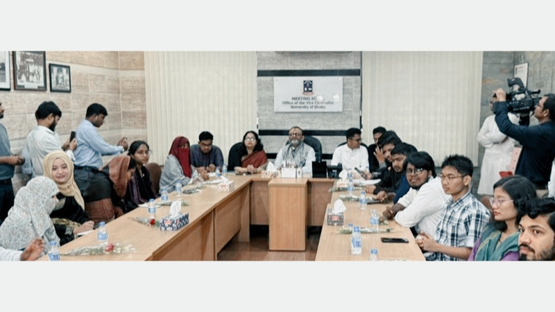 রাইজিংসিলেট-ডাকসুর ৫ প্রতিনিধি মনোনীত হলেন বিশ্ববিদ্যালয় সিনেটে। ঢাকা বিশ্ববিদ্যালয় কেন্দ্রীয় ছাত্র সংসদের (ডাকসু) প্রথম কার্যনির্বাহী সভায় পাঁচজন ছাত্র প্রতিনিধি বিশ্ববিদ্যালয়ের সিনেট সদস্য হিসেবে নির্বাচিত হয়েছেন। রোববার, ১৪ সেপ্টেম্বর, সকালে উপাচার্যের কার্যালয়ের পাশে লাউঞ্জে অনুষ্ঠিত সভায় সভাপতিত্ব করেন উপাচার্য অধ্যাপক নিয়াজ আহমেদ খান।