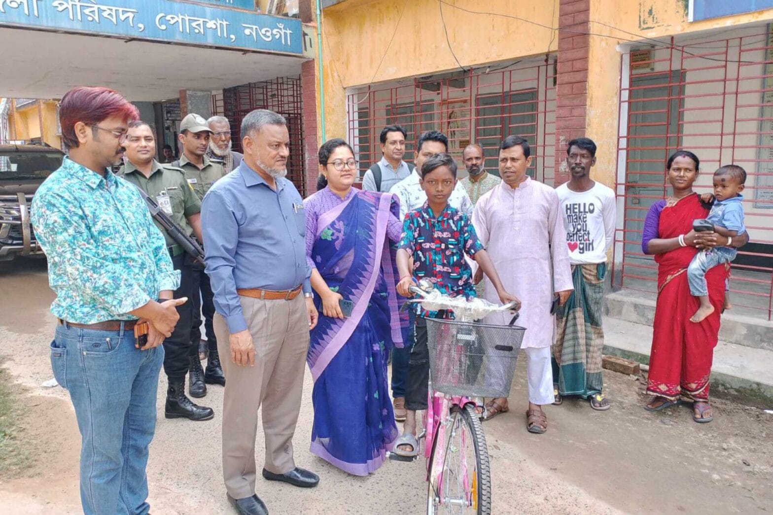 পোরশায় উপজেলা পরিষদের পক্ষ থেকে শিক্ষার্থীকে বাইসাইকেল প্রদান