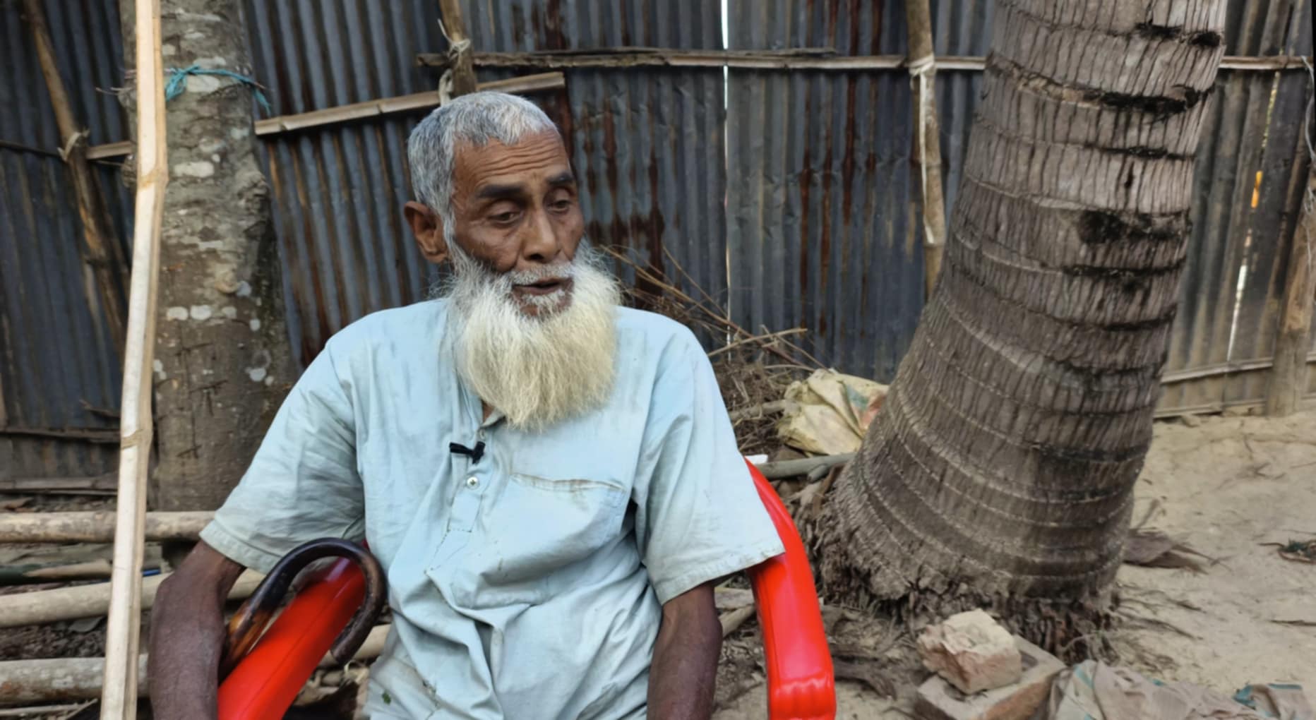বুধবার দুপুর ২টার দিকে, কান্নাজড়িত কণ্ঠে, শতবর্ষী এই বৃদ্ধ তার দুঃখের কথা বলছিলেন। তিনি জানান, “আমার এক ছেলে ছিল, আবু বক্কর নামে। বয়স ৩৫ বছর। জন্ম থেকেই অন্ধ। তাকে বিয়ে দিয়েছিলাম, কিন্তু দেড় বছরের মাথায় ছেলের বউয়ের যমজ সন্তান হয়। এর মধ্যে ছেলে সন্তানটি মারা যায়, আর বেঁচে থাকা মেয়ে সন্তানকে রেখে ছেলের বউ চলে যায়। আজ প্রায় ১০ বছর হয়ে গেল, তার কোনো খোঁজ নেই।”