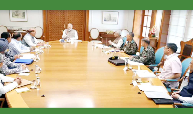 ভারতের প্রধানমন্ত্রী নরেন্দ্র মোদি উচ্চপর্যায়ের নিরাপত্তা বৈঠকে বসেছেন। অত্যন্ত গোপনীয় এ বৈঠক তার বাসভবনে অনুষ্ঠিত হচ্ছে। বৈঠকে তিন বাহিনীর প্রধান এবং প্রতিরক্ষামন্ত্রী রাজনাথ সিং উপস্থিত রয়েছেন। এ ছাড়া সিডিএস অনিল চৌহানও সেখানে উপস্থিত আছেন বলে জানা গেছে।