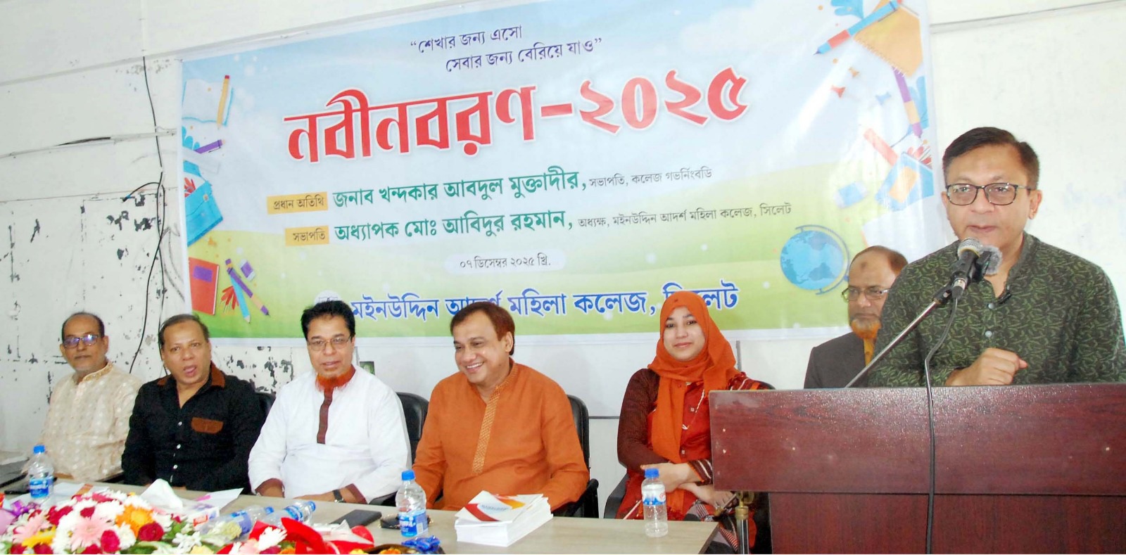 রোববার (৭ ডিসেম্বর) মইনউদ্দিন আদর্শ মহিলা কলেজ সিলেটের ক্যাম্পাসে আয়োজিত ২০২৫-২৬ শিক্ষাবর্ষের একাদশ শ্রেণীর শিক্ষার্থীদের নবীনবরণ অনুষ্ঠানে প্রধান অতিথির বক্তব্যে উপরোক্ত কথা বলেন। তিনি শিক্ষার্থীদের উদ্দেশ্যে আরো বলেন, তোমরা এখন এক নতুন অধ্যায়ের দ্বারপ্রান্তে। এখানে তোমরা জ্ঞান অর্জনের মাধ্যমে নিজেদের বিকশিত করবে। তোমরা আলোকিত হয়ে সমাজ ও দেশকে আলোকিত করো, এই প্রত্যাশা করি।