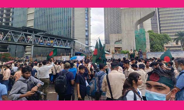 মঙ্গলবার (১৬ জুলাই) দুপুর ১টার দিকে তারা শাপলা চত্বর কেন্দ্র করে জড়ো হতে থাকে।