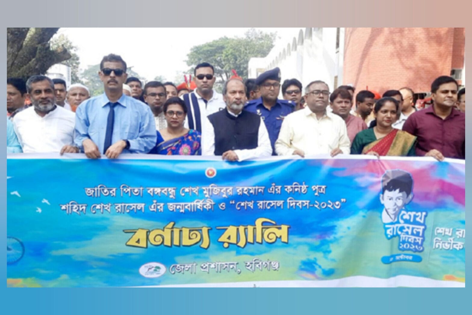 রাইজিংসিলেট- বঙ্গবন্ধু শেখ মুজিবুর রহমানের কনিষ্ঠ পুত্র শেখ রাসেলের ৬০তম জন্মবার্ষিকী উপলক্ষে হবিগঞ্জে পুষ্পস্তবক অর্পণ, আনন্দ শোভাযাত্রা, আলোচনা সভা ও শিশুদের মাঝে চিত্রাঙ্কন প্রতিযোগিতার পুরস্কার বিতরণ করা হয়েছে।