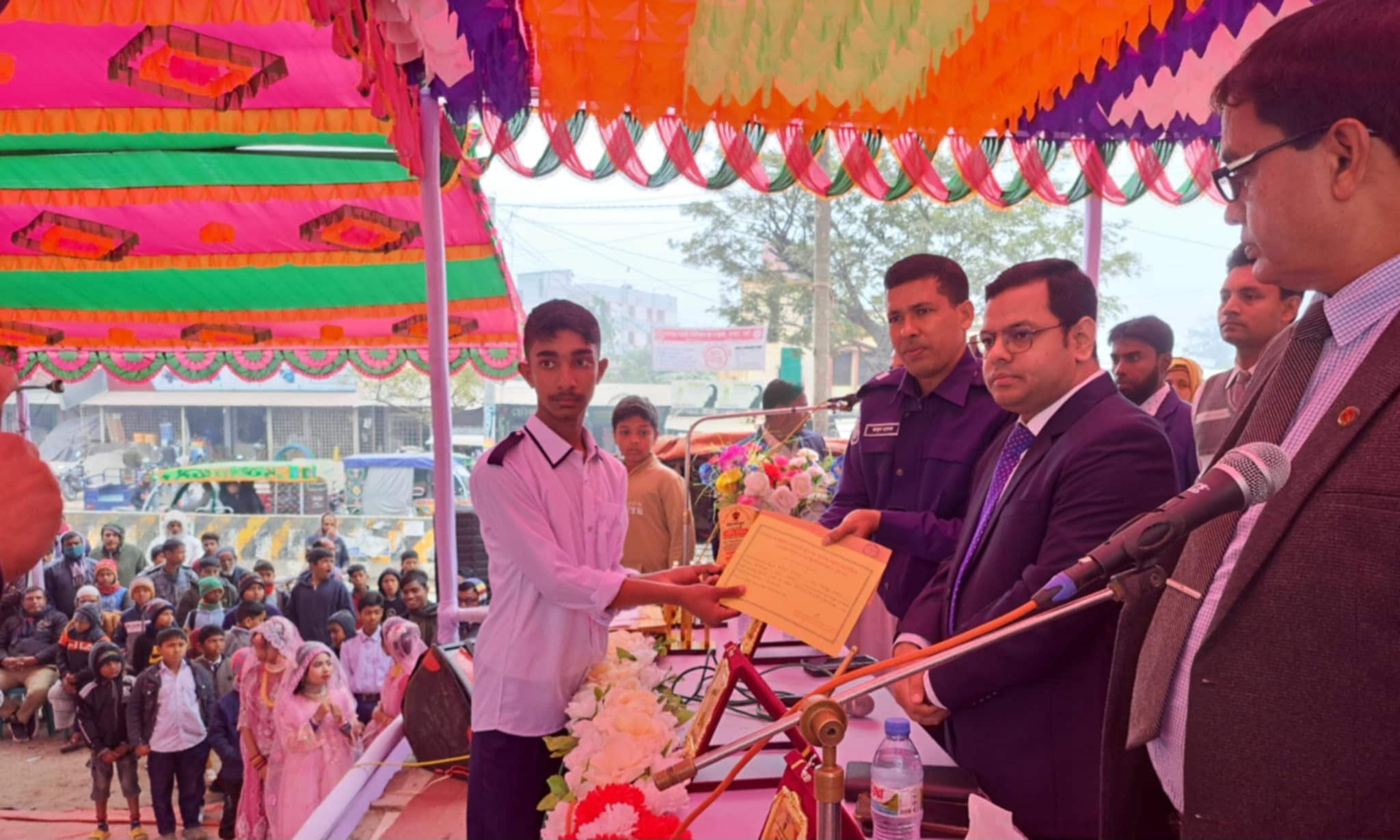 সোমবার (২০ শে জানুয়ারী) বেলা ১১ টায় সাপাহার ক্যামব্রিয়ান ক্যাডেট স্কুলের সামনের মঞ্চ এ শিক্ষার্থীদের এ সংবর্ধনা দেওয়া হয়।