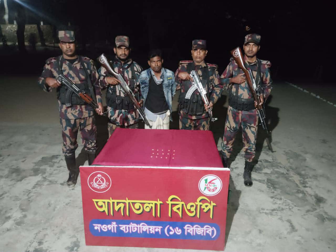 বিজিবি ১৬ ব্যাটালিয়ন (নওগাঁ) সূত্রে জানা যায়, গোপন সংবাদের ভিত্তিতে বৃহস্পতিবার রাতে আদাতলা বিওপির টহল কমান্ডার হাবিলদার মো. আবুল কালাম আজাদের নেতৃত্বে বিজিবির একটি বিশেষ টহল দল সীমান্ত এলাকায় অভিযান পরিচালনা করে। এ সময় সরলী গ্রামের নাইমুলের আম বাগানের ভেতর থেকে আতাউর রহমানকে আটক করা হয়। পরে তার কাছ থেকে ১৫ পিস ভারতীয় ট্যাপেন্টাডল ট্যাবলেট উদ্ধার করা হয়।