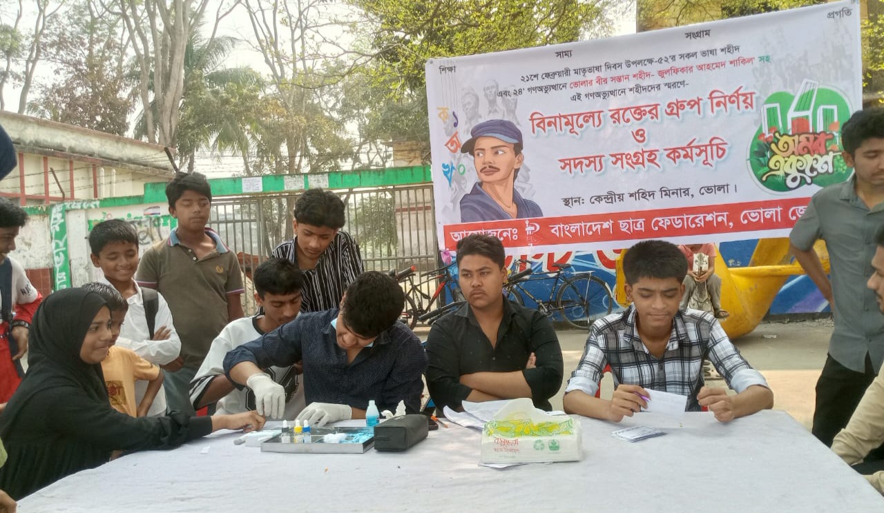 বিনামূল্যে রক্তের গ্রুপ নির্ণয় ও সদস্য সংগ্রহ কর্মসূচি পালন কালে আলাপ কালে বাংলাদেশ ছাত্র ফেডারেশন ভোলা জেলা শাখার সংগঠকরা বলেন, ‘আমাদের তরুণ সমাজ দীর্ঘদিন একটি বৈষম্যহীন রাষ্ট্র কায়েমে সংগ্রাম করে যাচ্ছে। সম্প্রতি গণঅভ্যুত্থানে ভোলার বীর সন্তান শহীদ- জুলফিকার আহমেদ শাকিল আমাদের সহযোদ্ধা। আমাদের মুক্তির জন্য জীবন উৎসর্গ করে গিয়েছে। আমরা এখন বিভেদের রাজনীতি পরিহার করে ঐক্যর রাজনীতি প্রতিষ্ঠা করতে চাই। তাই সকল শ্রেণী পেশার মানুষের ঐক্যই বৈষম্যহীন রাষ্ট্র কায়েমের প্রথম শর্ত।